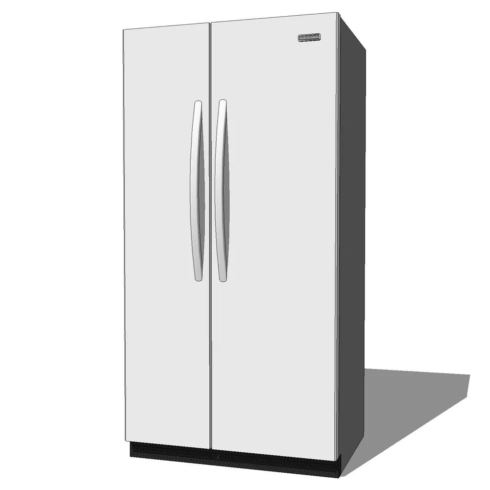 This precision-engineered double door refrigerator model boasts a minimalist white finish and vertical grip handles, ideal for contemporary kitchen layouts. The SketchUp file includes detailed components for seamless integration into residential or commercial interior designs.