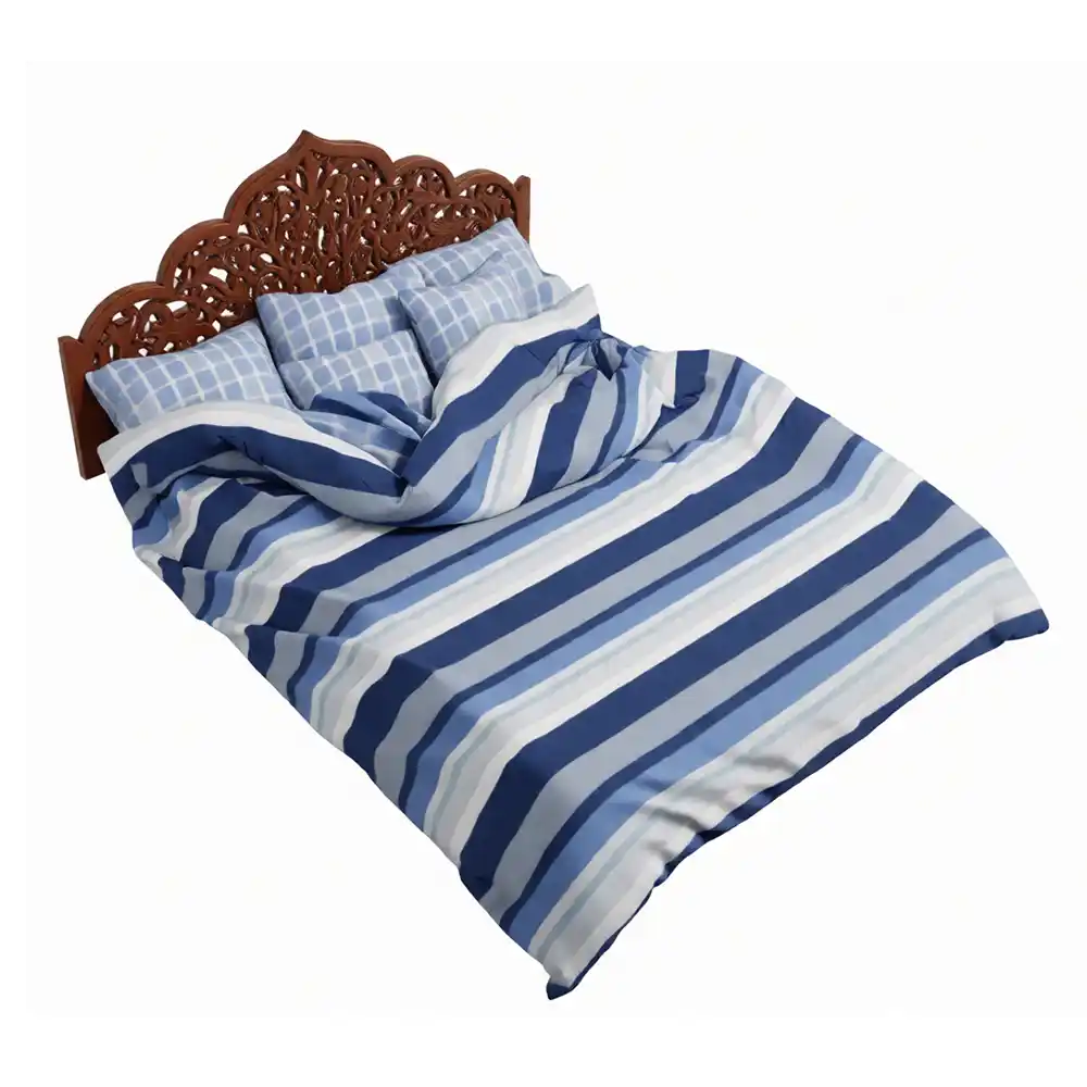 この精巧に作られた彫刻が施された木製の ベッド 3Dモデルは、装飾的なヘッドボードと青いストライプの寝具を特徴としており、 ベッドルーム リアルな質感と優雅なデザイン要素でSketchUpのビジュアライゼーションを強化するのに理想的です。