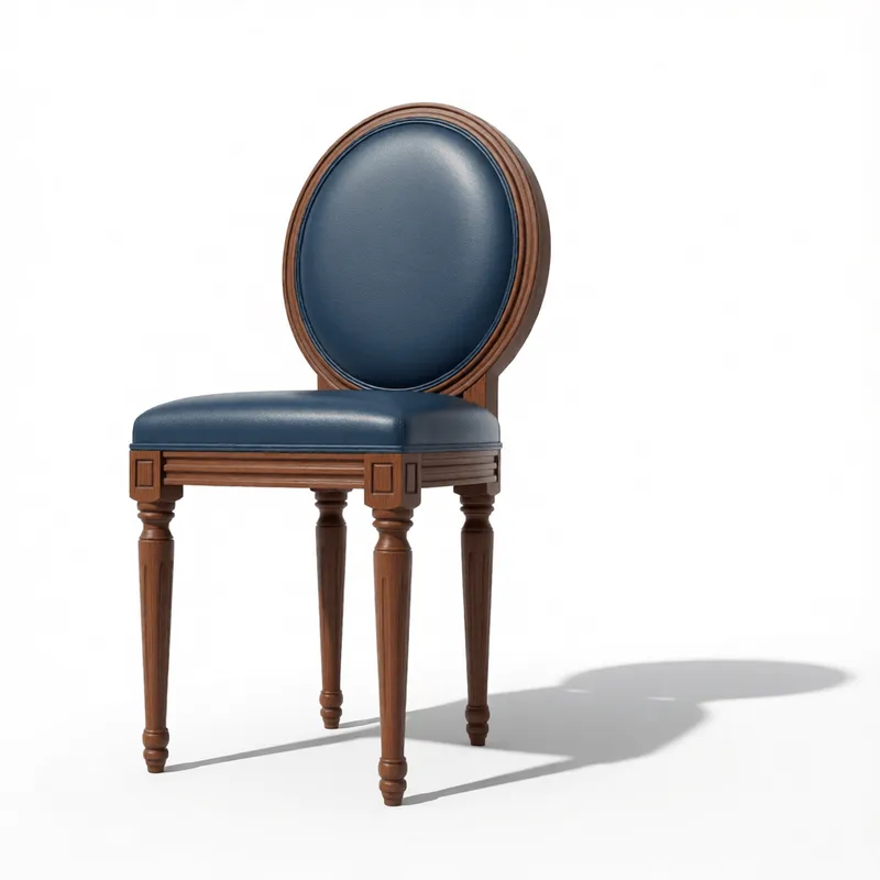 この精巧に作られたアメリカンスタイルの椅子3Dモデルは、濃紺のレザー張りで優雅な楕円形の背もたれと彫刻が施された木製の脚が特徴です。SketchUp 2021用に最適化され、D5render、Enscape、Vray向けの写実的なテクスチャを備えており、本格的な職人技のディテールで伝統的なインテリアデザインプロジェクトを引き立てます。