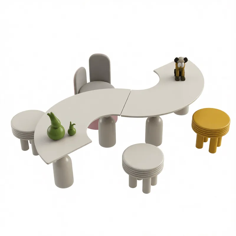 このモダンな曲線デザインの子ども用テーブル3Dモデルは、有機的な形状とパステルカラーのオプションを備えたモジュラー式座席を特徴としています。SketchUp 2021向けに最適化され、D5RenderおよびEnscapeとの互換性を有し、直感的な空間計画と遊び心のある美学を通じて幼稚園のインテリアデザインプロジェクトを強化します。