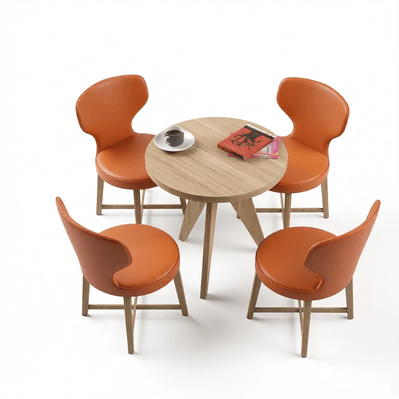 この現代的な子供用ダイニングセットの3Dモデルは、有機的な曲線を描く人間工学に基づいたオレンジ色の革張りチェアと、ミニマリストデザインの木製テーブルを特徴とし、SketchUp 2021向けに最適化されています。D5render、Enscape、Vrayに対応し、子供向け家具ソリューションを必要とする活気あるインテリアデザインプロジェクトに、写実的な質感を提供します。
