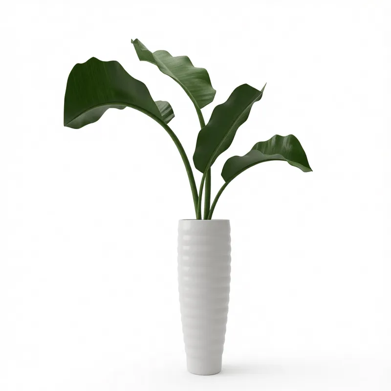 この精巧に作られた3Dモデルは、テクスチャー加工された白い花瓶に植えられた、広くてリアルな緑の葉を持つ背の高い観葉植物を特徴としています。SketchUp 2021向けに最適化され、D5render、Enscape、Vrayと互換性があり、2.6MBの軽量パフォーマンスを維持しながら、インテリアデザインプロジェクトに有機的な優雅さを加えます。