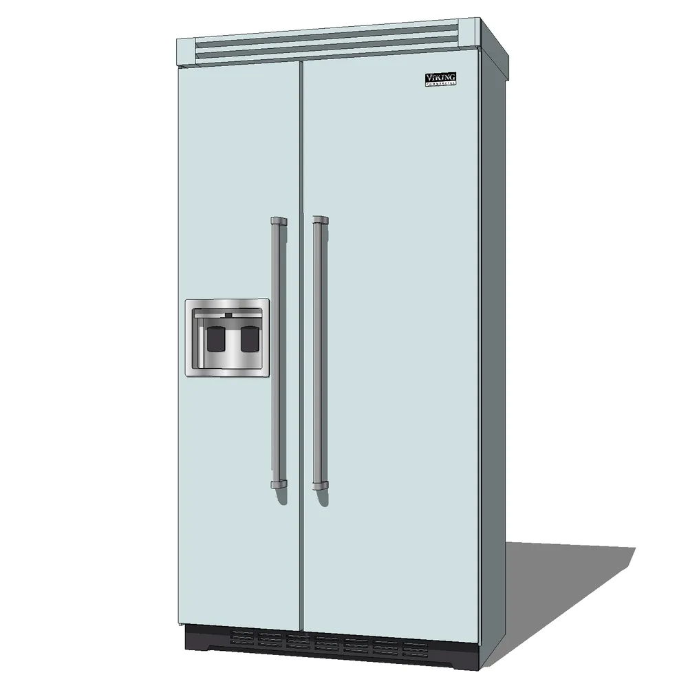 This precision-engineered Viking refrigerator model features dual doors, integrated ice dispenser, and sleek stainless steel hardware. Perfect for architectural visualization and interior design projects requiring commercial-grade kitchen appliances.