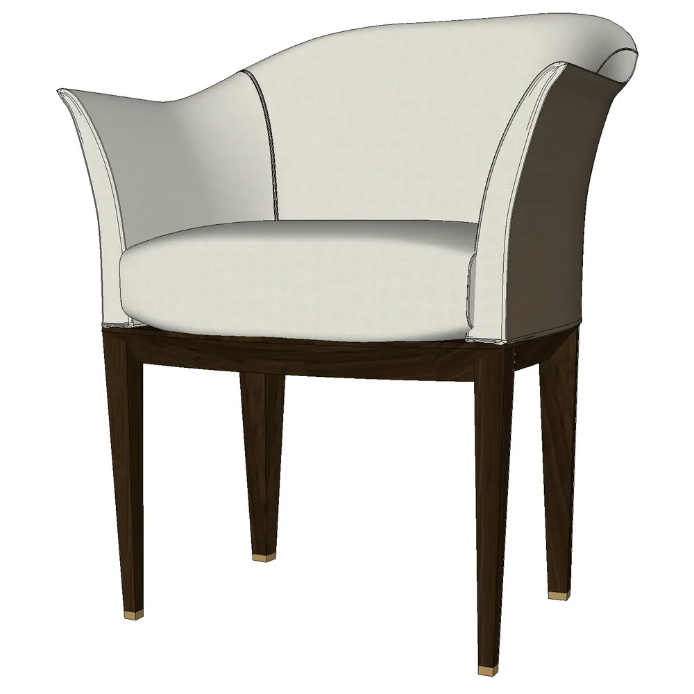 This premium armchair 3D model combines minimalist elegance with luxurious details, featuring plush cream upholstery accented by precise stitching lines and supported by sturdy dark walnut legs with gold foot caps. Its clean lines and balanced proportions make it ideal for contemporary interior design projects requiring both aesthetic appeal and structural integrity.