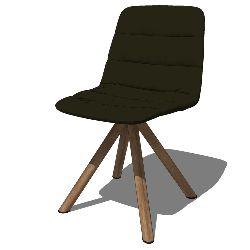 This precision-modeled swivel chair features a dark brown upholstered seat with sustainably-sourced walnut legs in a tapered Y-base construction. Its optimized for SketchUp performance, ideal for modern office layouts and residential spaces.