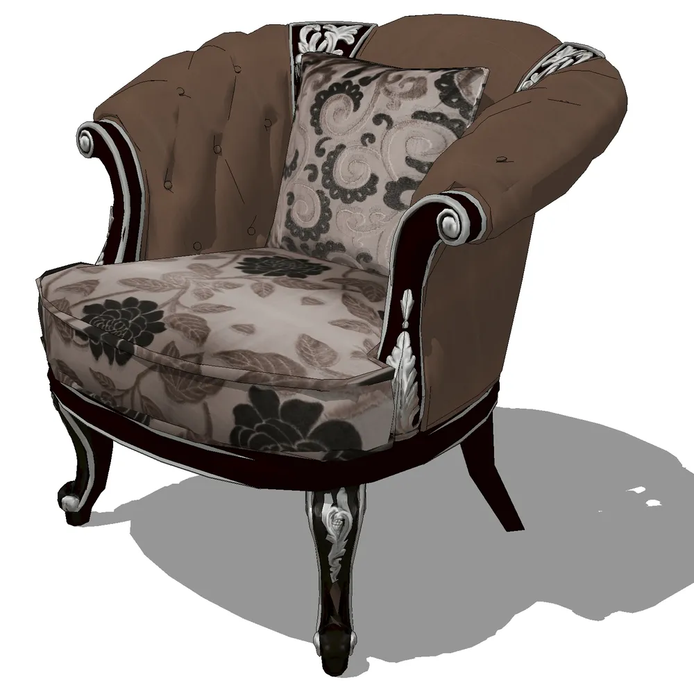 Ornate Vintage Armchair with Floral Upholstery SketchUp Model