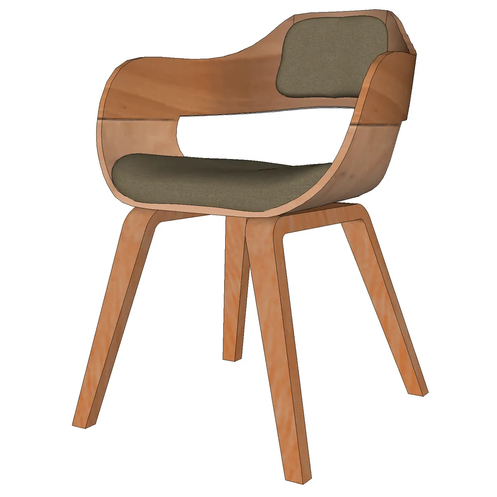 Modern Wooden Chair with Curved Backrest SketchUp Model