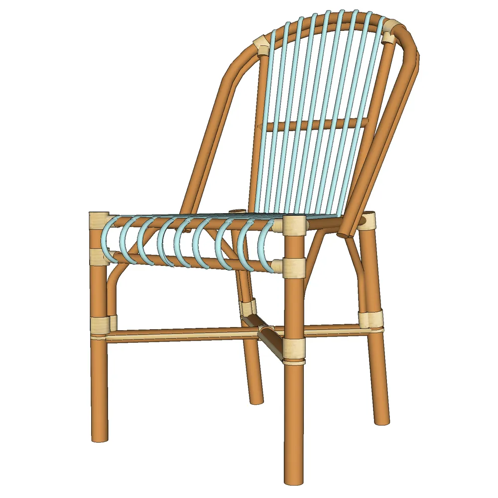 This intricately designed woven bamboo dining chair features a natural wood frame combined with handcrafted rope weaving patterns, offering both aesthetic appeal and functional versatility for contemporary interior projects.